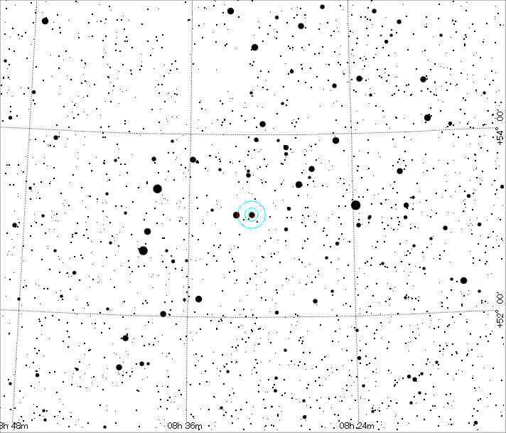 Star :HIP 41805 (mag 7.7) Asteroid : (98943)2001 CC21 (mag16.2)広域星図 The SKY 6 により作成