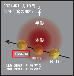 部分月食の終了時刻の誤り解説図中 (誤)18h47m (正)19h47m