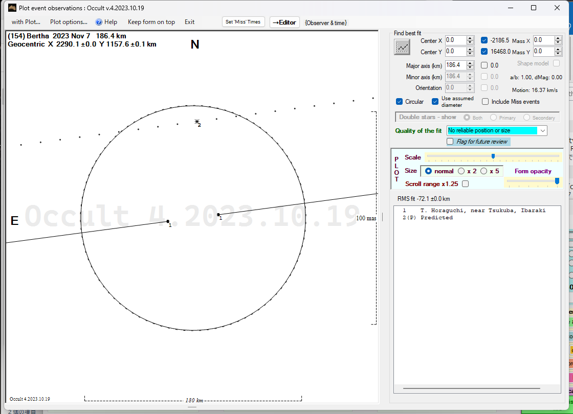 | 932 | 2023/11/7 | 154 Bertha | UCAC4 589-008293 | 13.8 | 1 | 1 | update | update | 2023 Nov.21 | ||||||