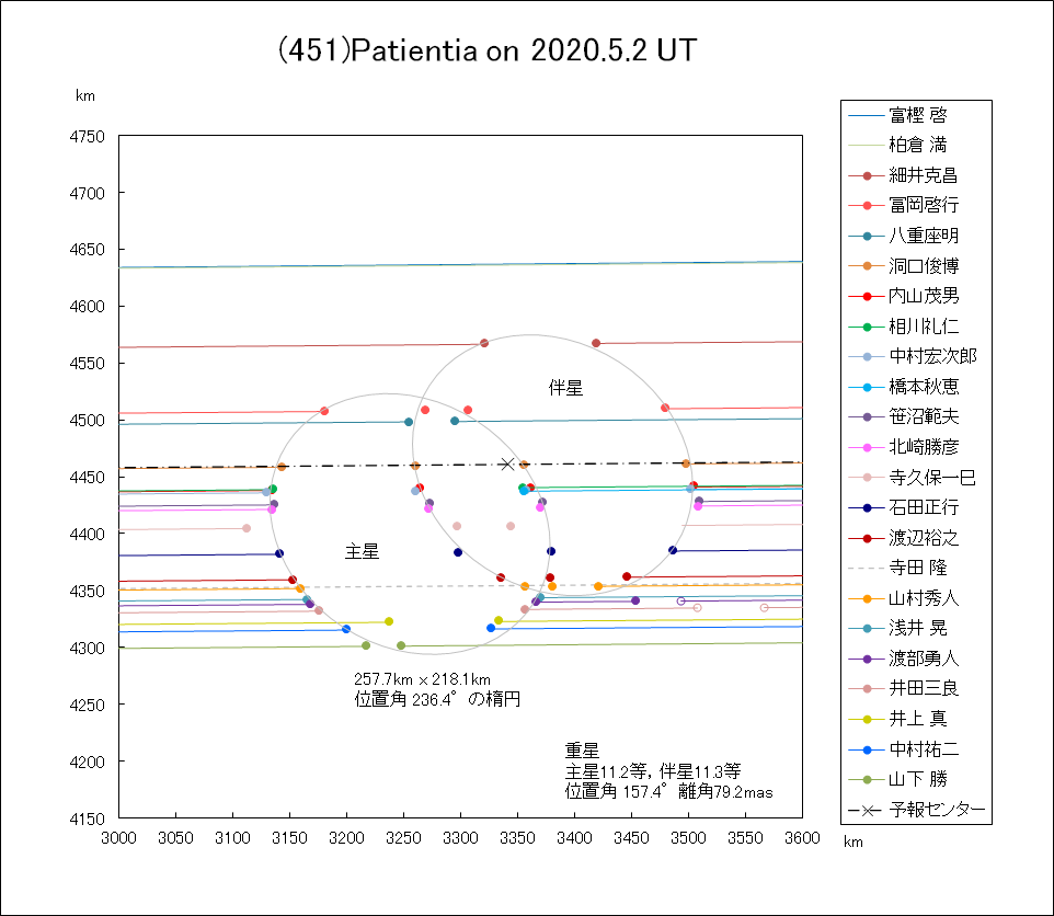 2020年5月2日 22時50分(日本時間)頃 観測された 小惑星パティエンティア(451 Patientia)による 10.5等星(TYC 5631-00932-1)食の結果です。